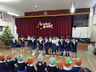 クリスマス会で披露した、“イチゴサンタクロースと踊りましょう”を踊りました。