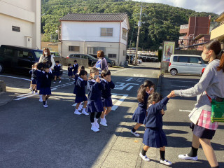すみれクラスの子どもたちも車が来ないかよく見て渡っています。